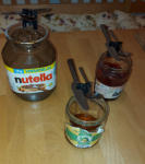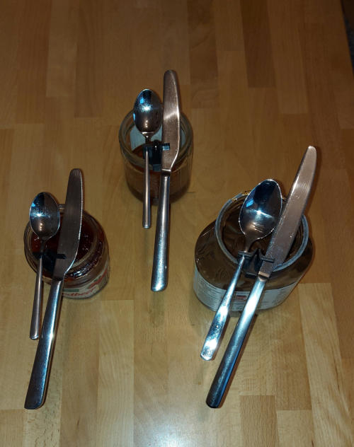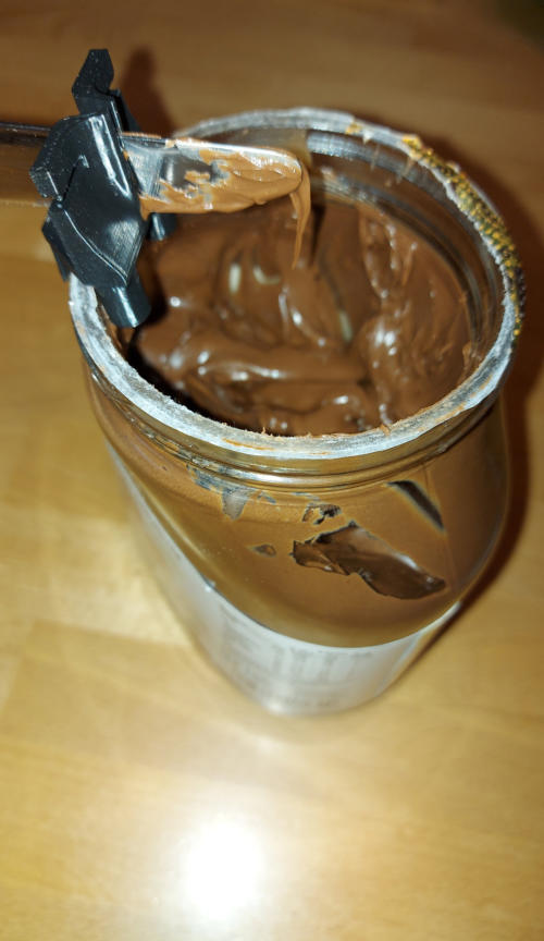 Der Messerabstreifer wird auf das Nutella-, Marmeladen- oder Honigglas aufgesteckt.