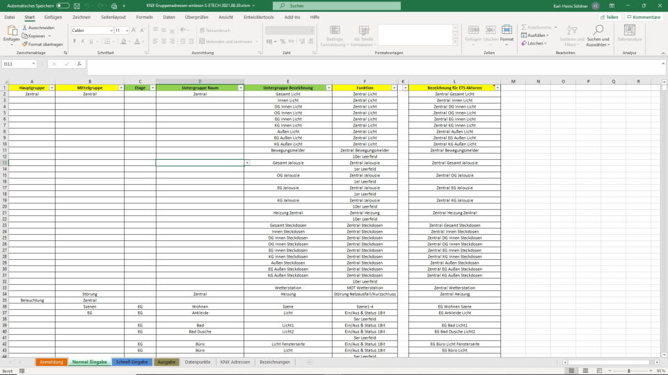 Mit dem Programm KNX Gruppenadressen einlesen kann man schnell die Gruppenadressen